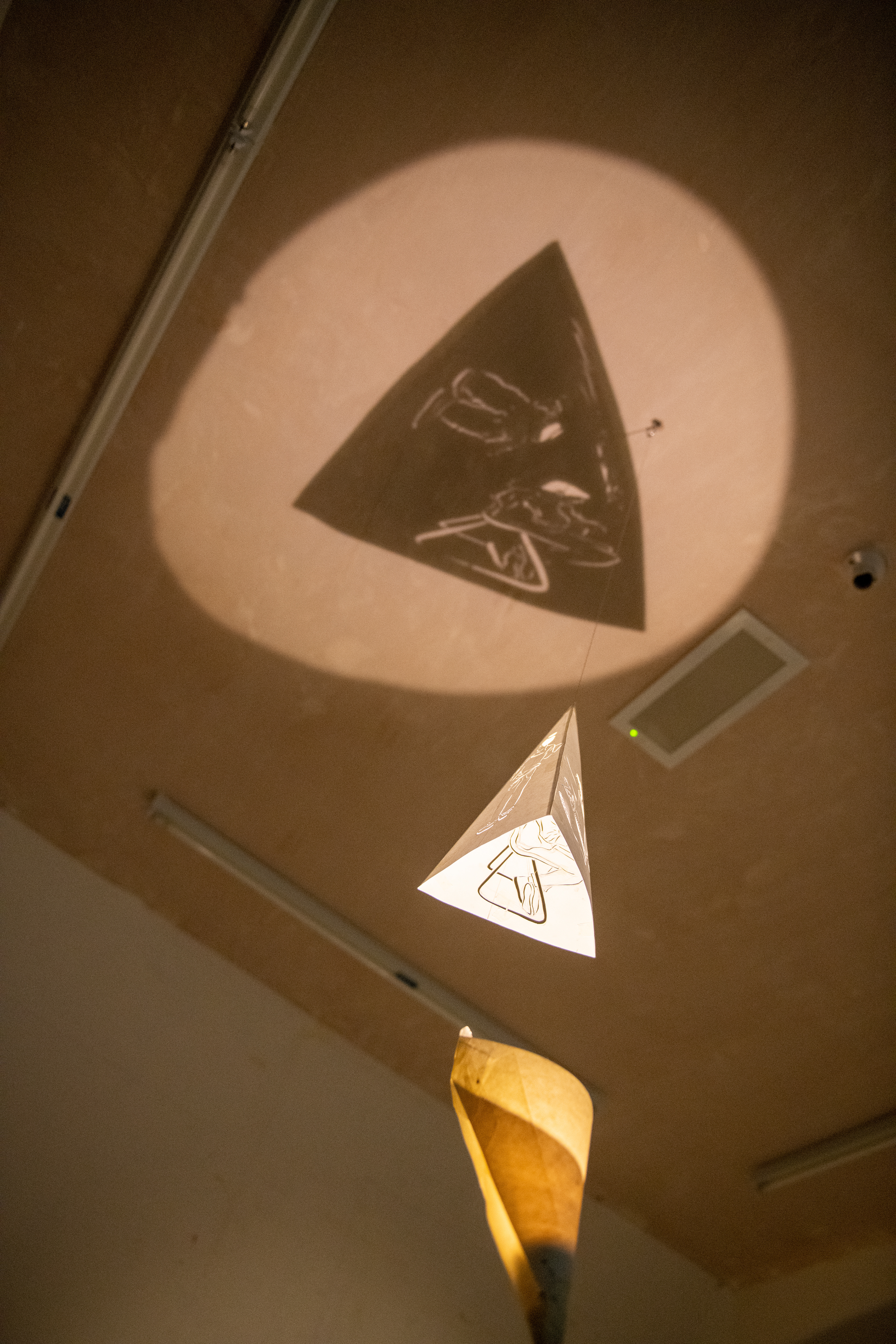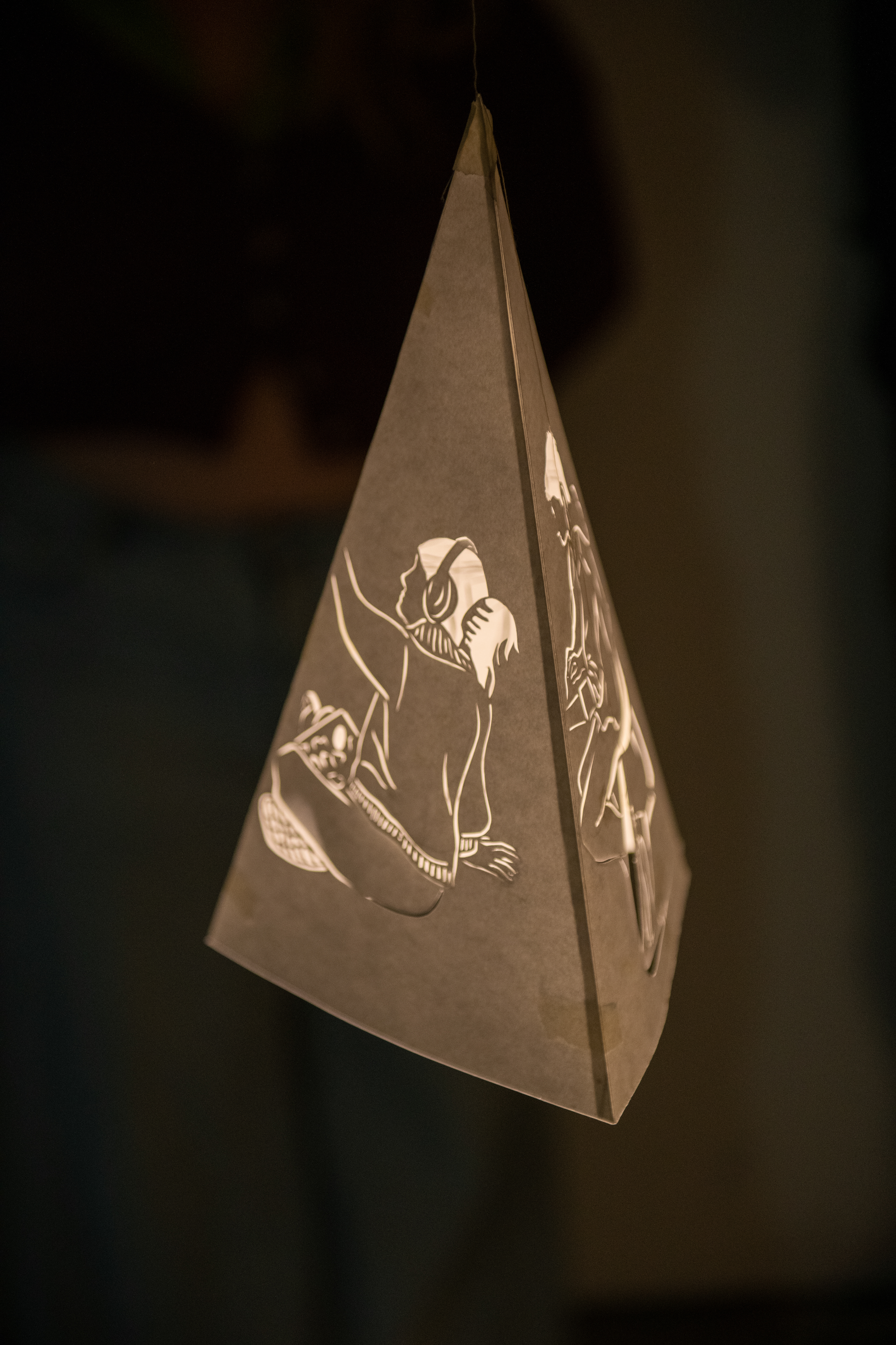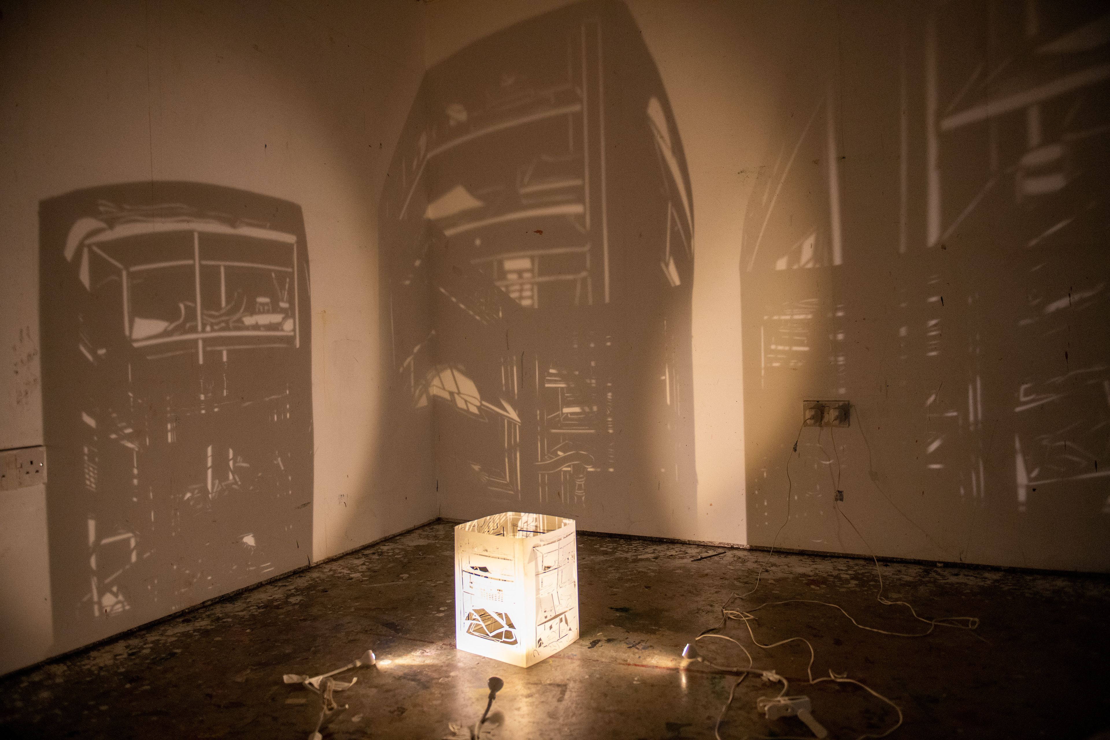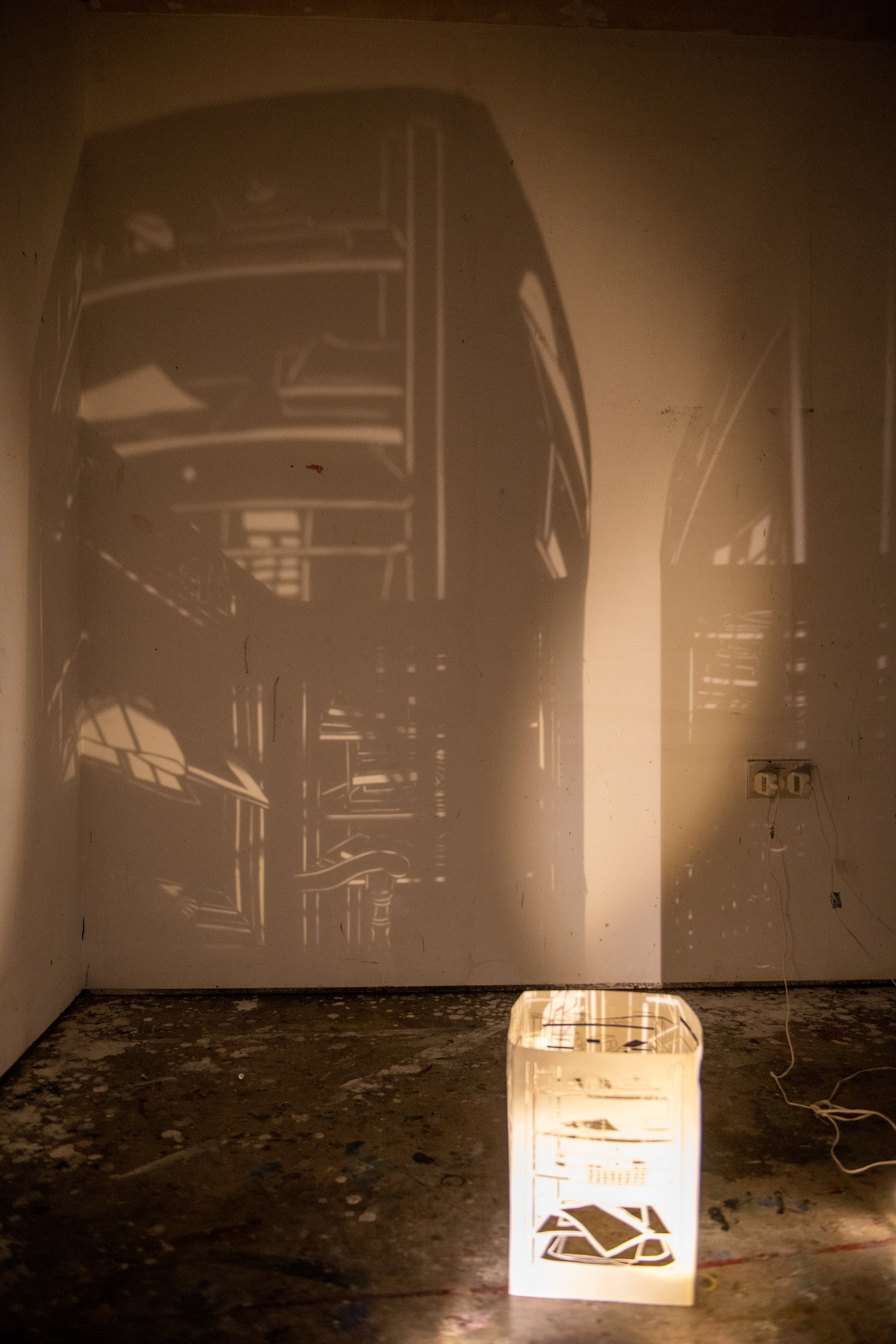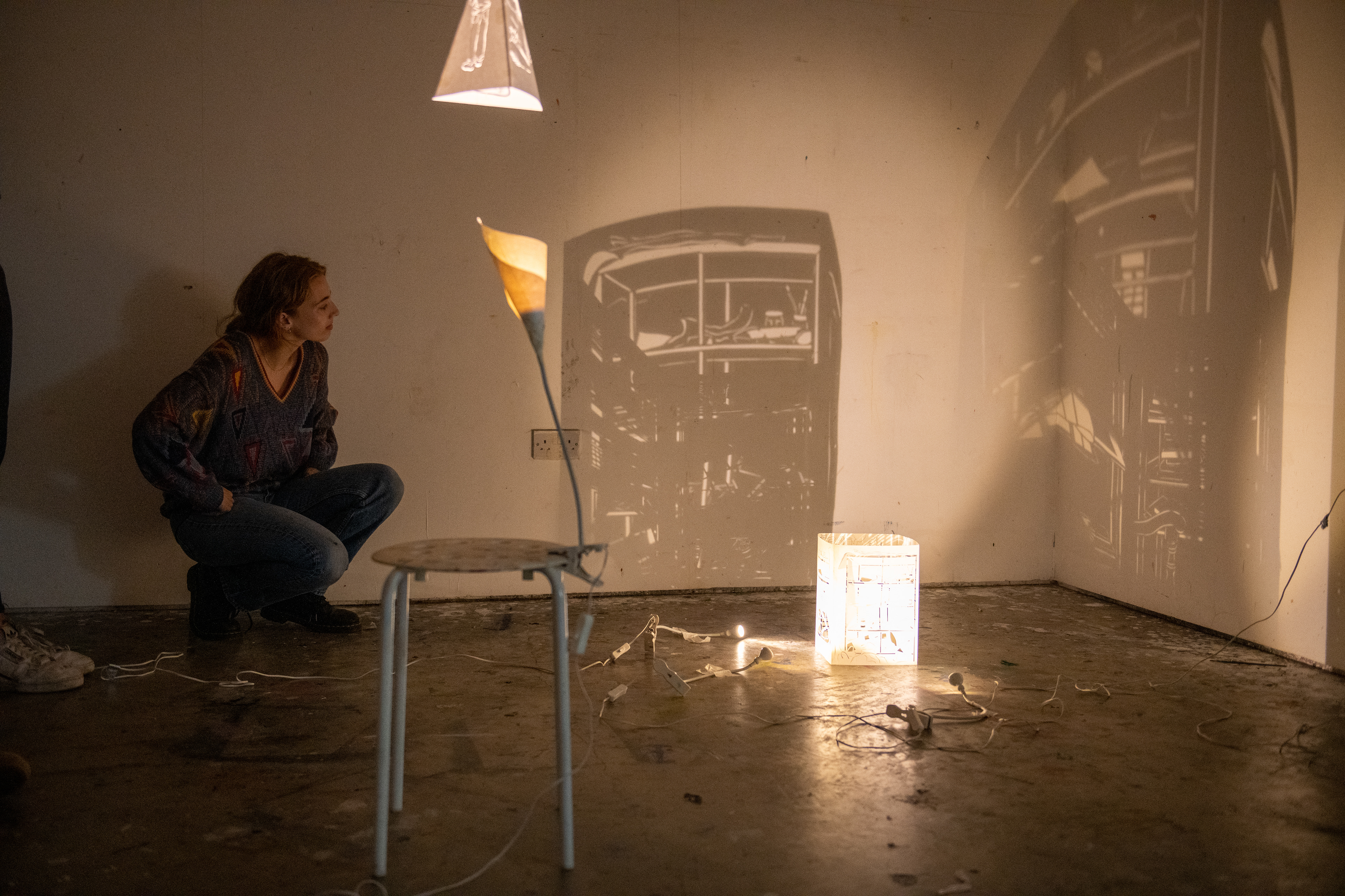 This light portrays the beauty and importance of decay as part of the circle of life. The soft lighting and white shades of fabric represent a heavenly, angelic quality, while the secondhand textile material and different methods of distressing represent the both the destruction and renewal associated with decay.